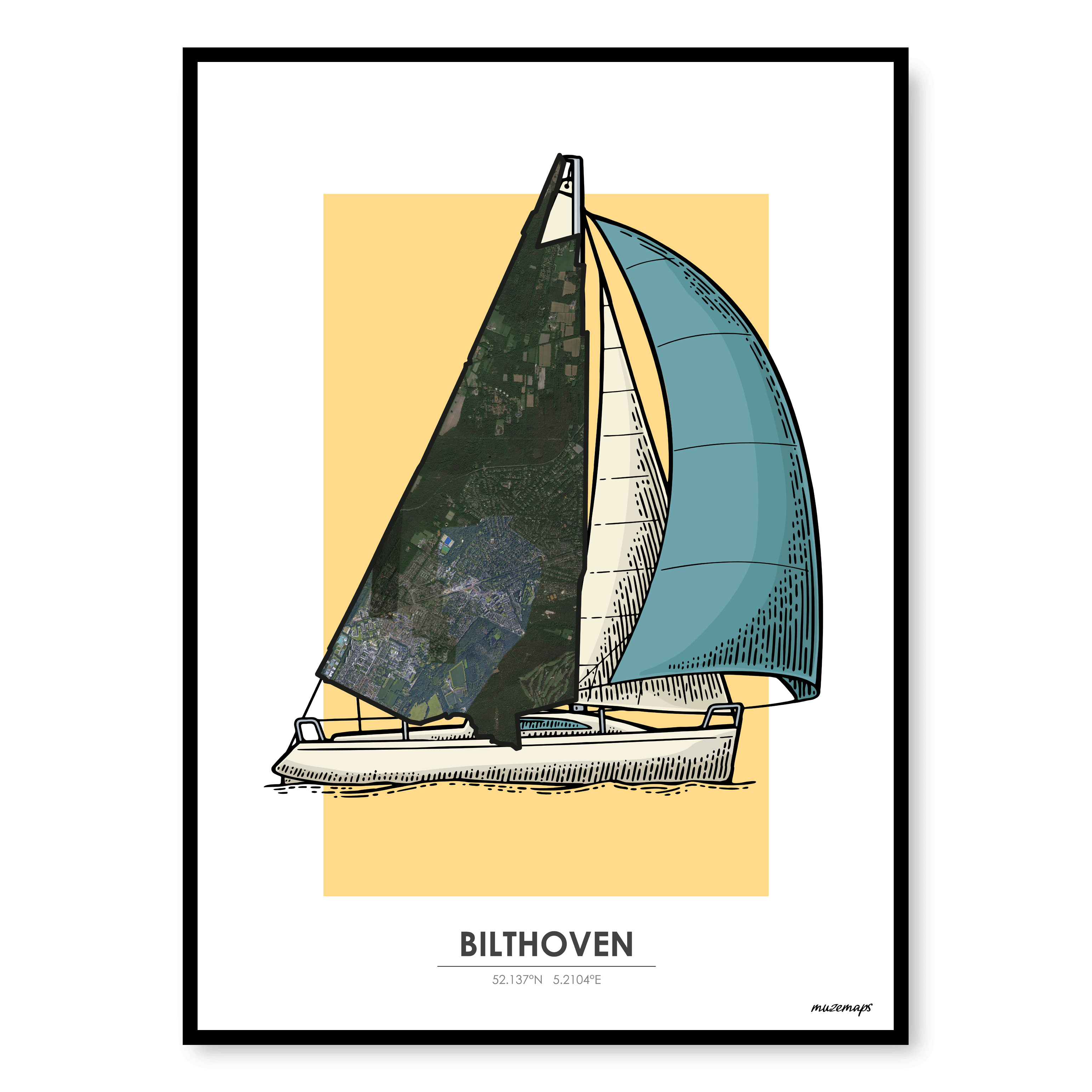 Deze MuzeMap van Bilthoven is standaard verkrijgbaar op hoogwaardig canvas, maar wil je een ander formaat of materiaal? Laat het ons weten, dan kijken we samen naar de mogelijkheden.