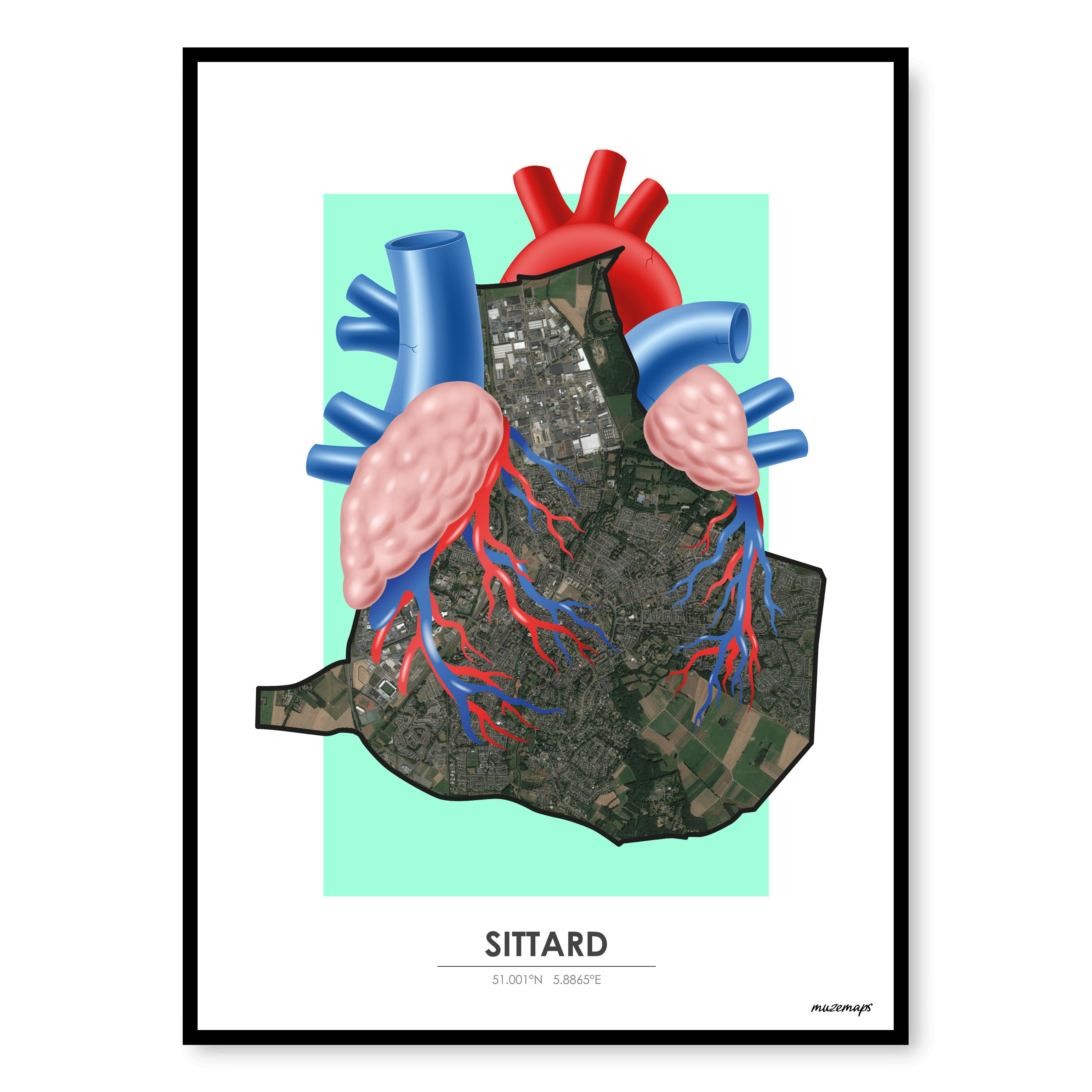 Elke MuzeMap begint met een idee: wat maakt een stad bijzonder? Voor Sittard hebben we de stad letterlijk in een nieuw jasje gestoken. De vorm van de stad wordt het canvas, en daar voegen we een creatieve laag aan toe. Dit ontwerp is met de hand samengesteld door kunstenaar en stedenbouwkundige Dennis van der Loop. Hij kijkt naar de lijnen, de vormen en de energie van een plek en maakt er iets unieks van. Geen standaard stadskaart dus, maar een echte eyecatcher!